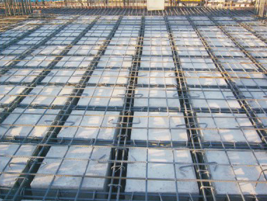 3、用鐵絲綁扎填充內(nèi)模兩端,并安裝下墊塊鋪放填充內(nèi)模即開槽處